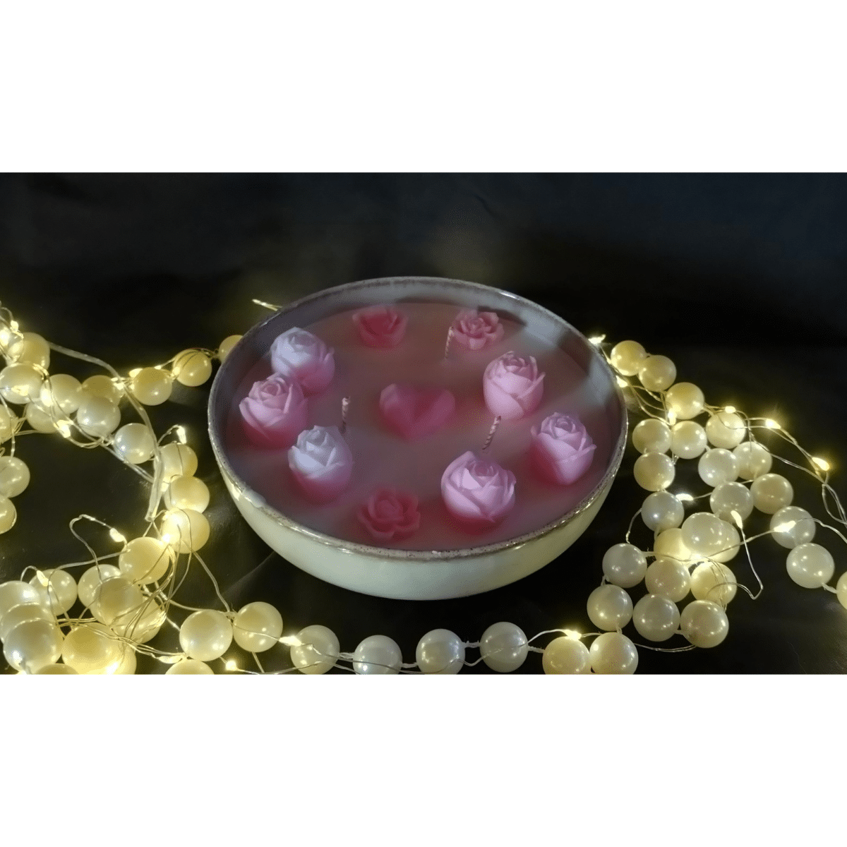 Käsitöödisain: Iga küünal on kaunistatud roosade vahalillede ja südamega, mis sulavad põlemisel ühtlaselt ülejäänud vahaga.