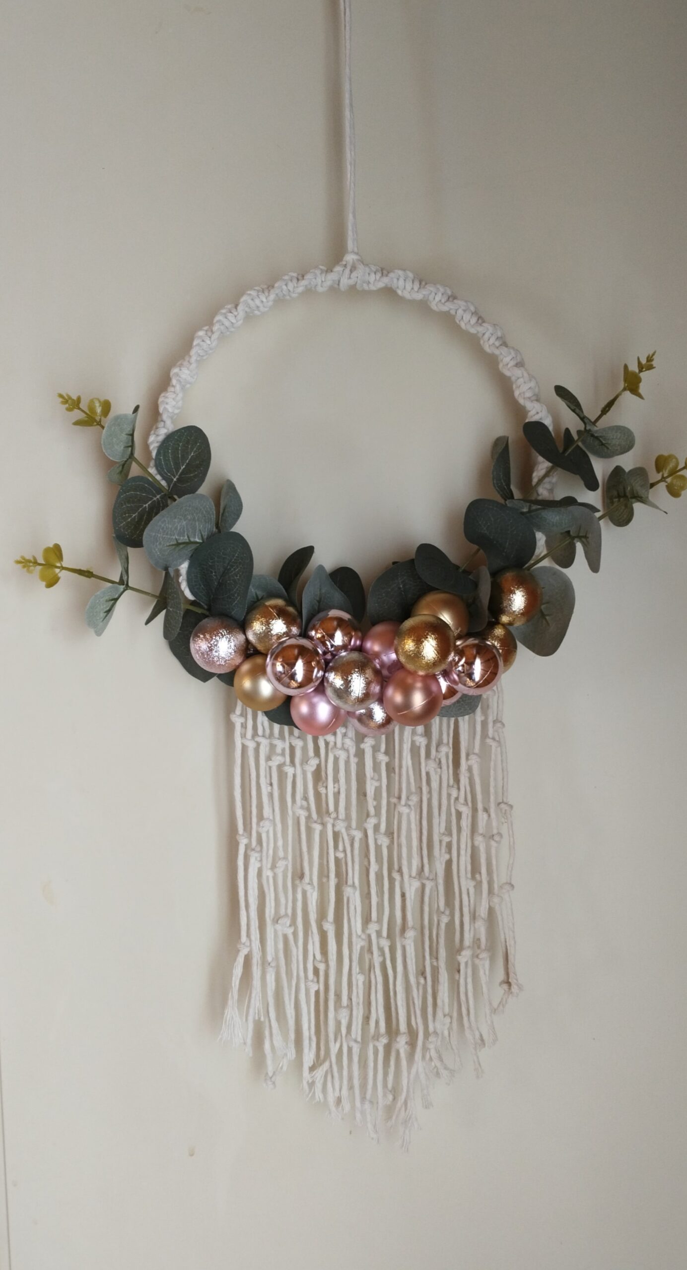 Materjalid: makramee puuvillane nöör, kunst-eukalüpt, dekoratiivsed ehted.