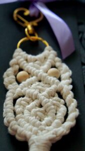 Käsitsi valmistatud makramee ripats looduslikust puuvillaniidist. Armas öökulli motiiv sümboliseerib tarkust ja kaitset. Kaunistab võtmeid, kotti või interjööri. Suurus umbes 12–14 cm.